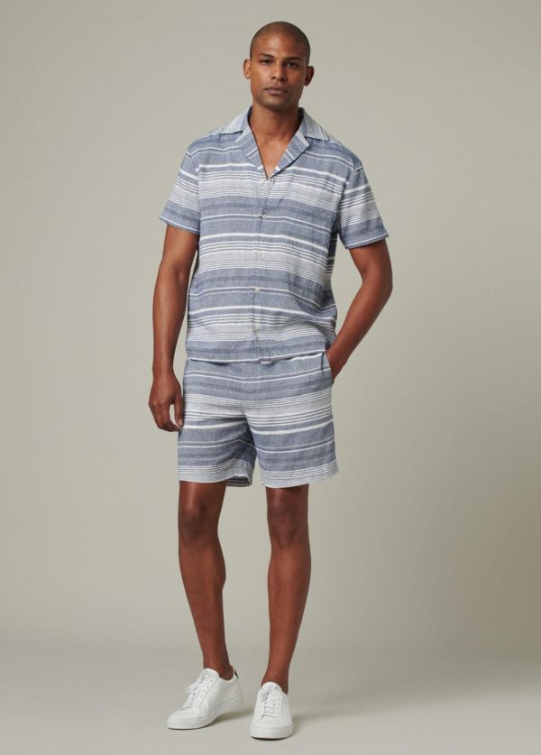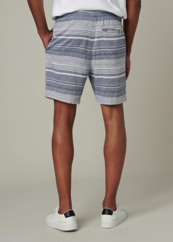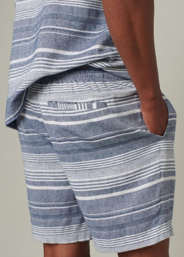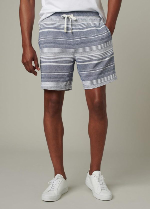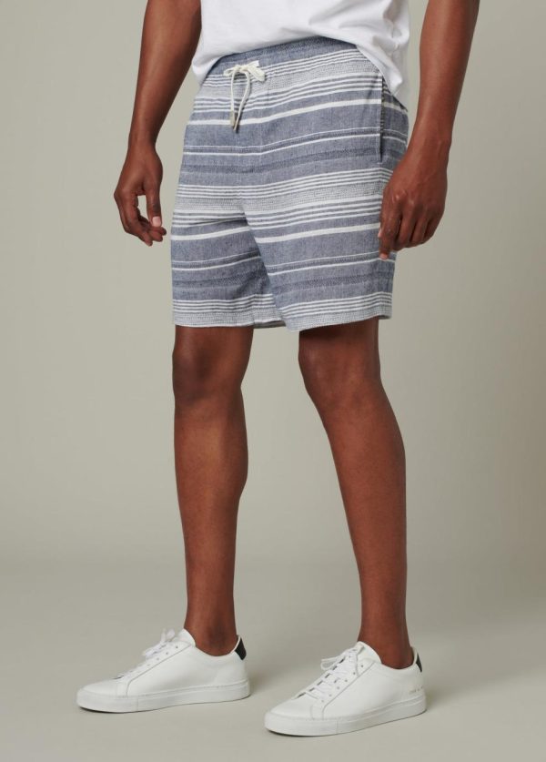 The drawstring Charlie Short gets a seasonal update in a cotton blend that’s woven that has an artisan touch thanks to the jacquard-like chambray stripe. Easy to style with a polo or the Camp Shirt for a put together look.