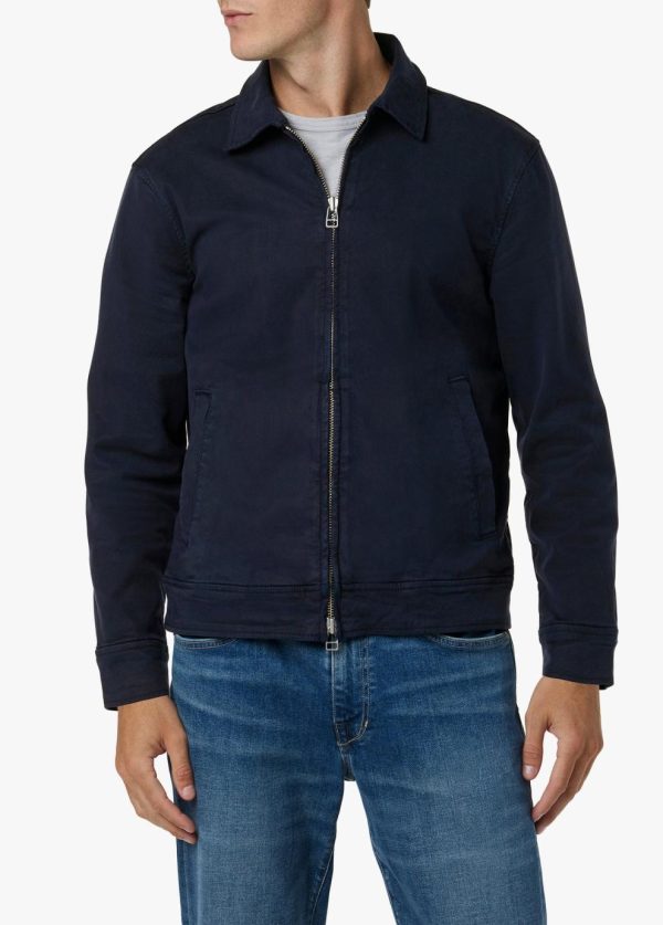 The Mechanic Jacket in Night Sky has vintage-inspired styling with modern stretch-blend fabric for comfort and softness. It features a zipper closure, binding details and pointed collar in the perfect weight to be worn all year.