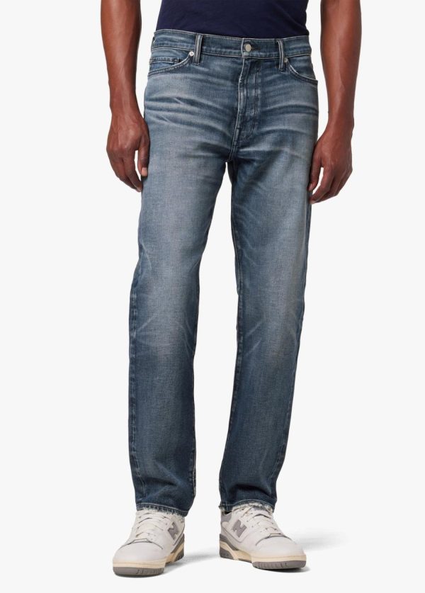 A vintage straight fit cut from comfortable denim stretch defines the Roux in ‘Cooper’. The wash is inspired by vintage looks with a heavy dry process, hand detailing and a throwback abrasion pattern.
