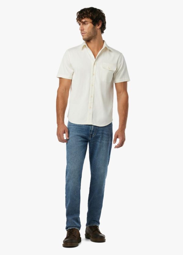 Experience timeless style with our vintage-inspired straight leg cut crafted from premium comfort denim. The ROUX in Ari features a beautifully worn-in medium light wash with subtle distressing for that perfectly broken-in look