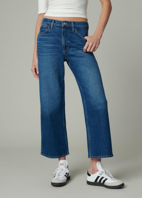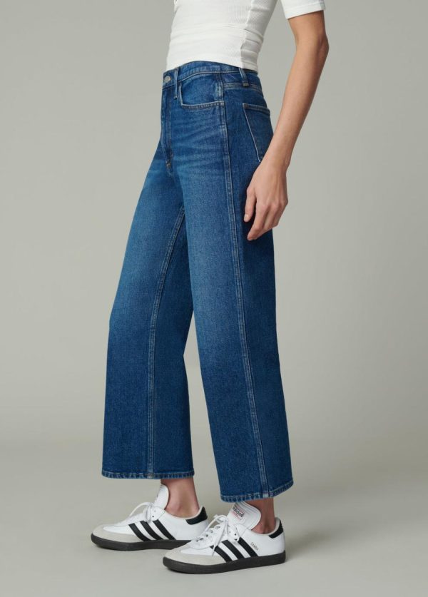 Slim fit through the waist and hips with a high rise and a minimal wide leg that hits above the ankle.