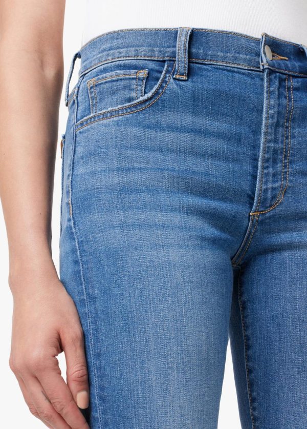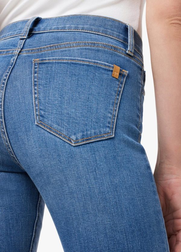 The Callie in Optimist is a high-rise cropped bootcut jean with the comfort and ease of super stretch. The washed down medium-dark shade is finished with local sanding and whiskering.