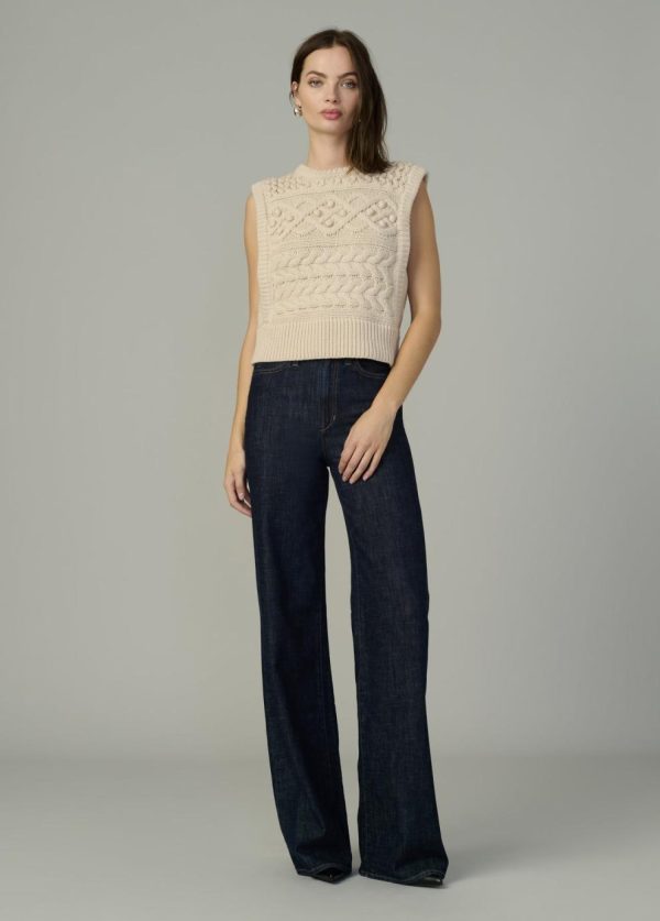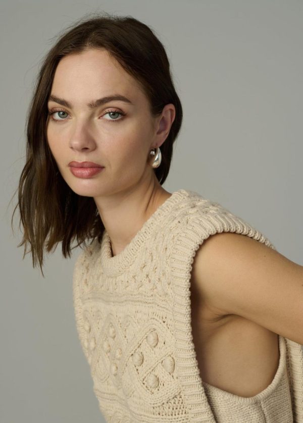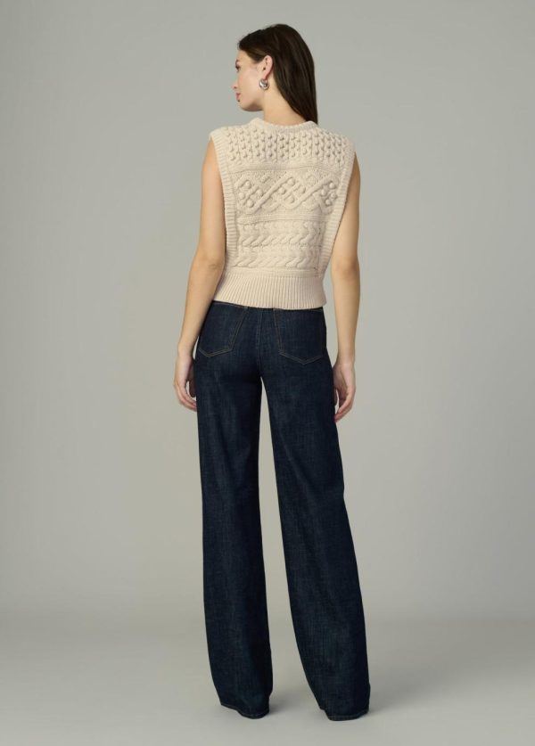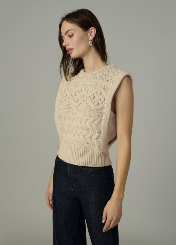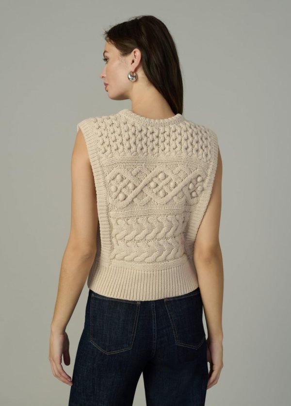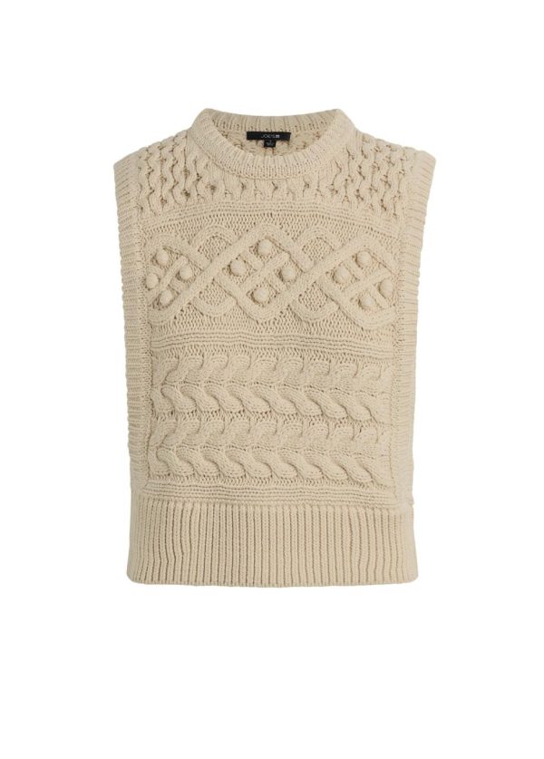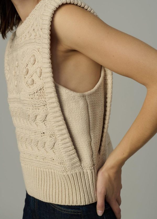 Sleeveless sweater in a classic, modernized cable knit.