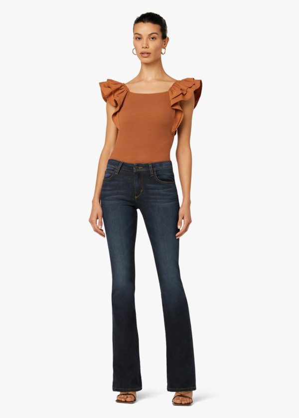 Joe’s Curvy Bootcut premium denim jean in Rikki is the epitome of sleek and sexy. With its dark blue wash and soft, lightweight Cotton and Elastane blend, this jean is specially designed to embrace the curvy woman’s physique. Featuring subtle whiskers and sanding from the thigh to knee, the Rikki is as versatile as the woman wearing them.