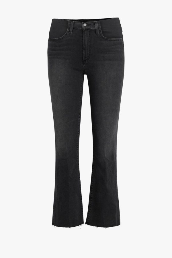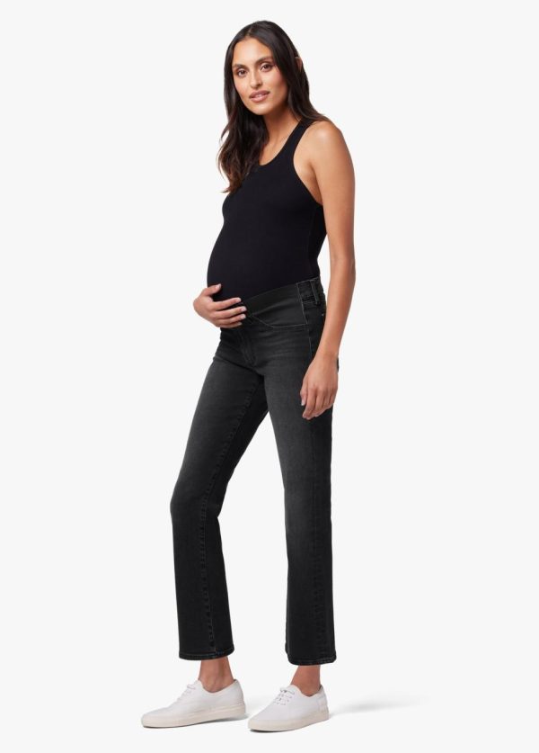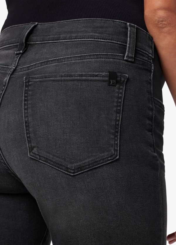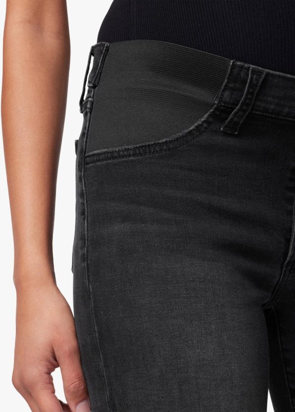 The Icon Crop Boot in Delphine is a mid-rise jean styled with added drama at the ankles. The subtle flare at the hem lets you express your style and showcase your favorite footwear. It’s made from our Flawless denim with sculpting stretch and flexible maternity waistband in faded black denim