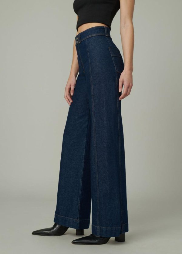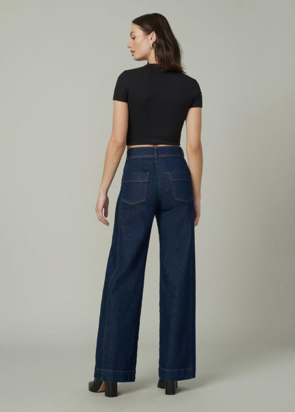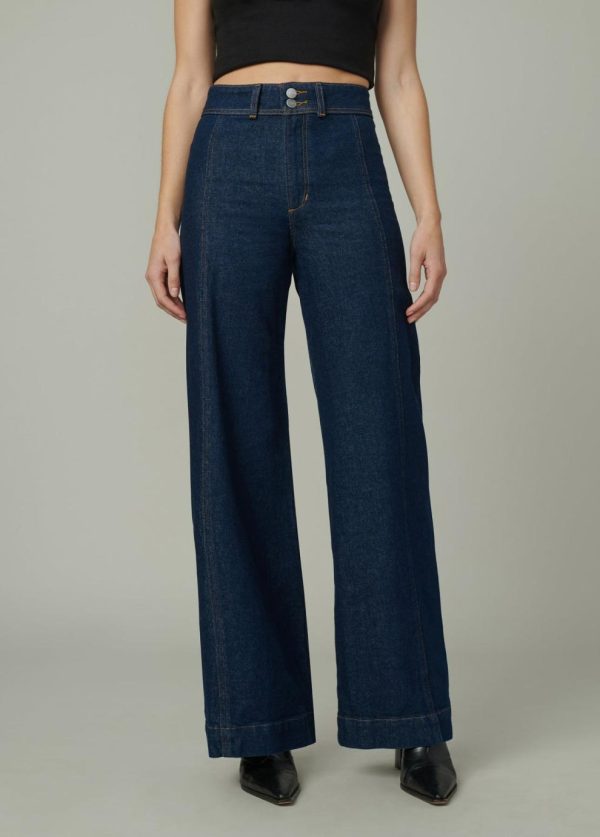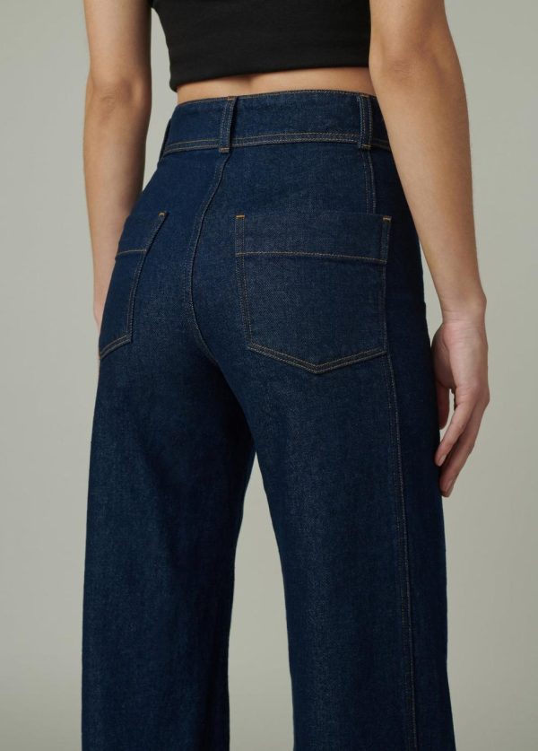 Relaxed fit through the waist and hips with a high rise and full-length wide leg.