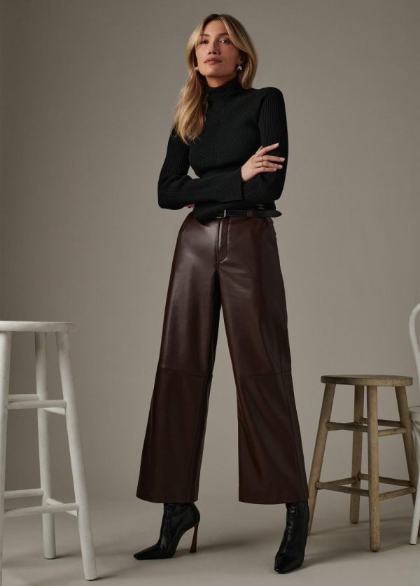 Experience sophisticated style with our slim-fitting design that contours your waist and hips, featuring a flattering high rise and elegant wide leg that gracefully hits above the ankle for a modern silhouette.