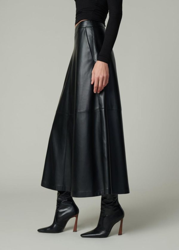 Elevate your wardrobe with this sophisticated high-waist design featuring a flattering full A-line silhouette enhanced with elegant seamed paneling.