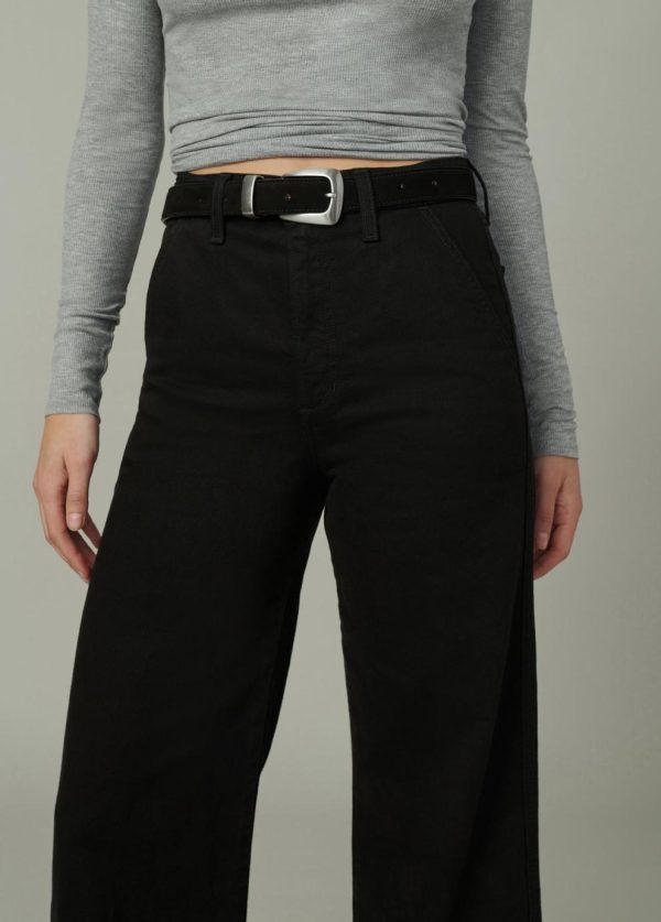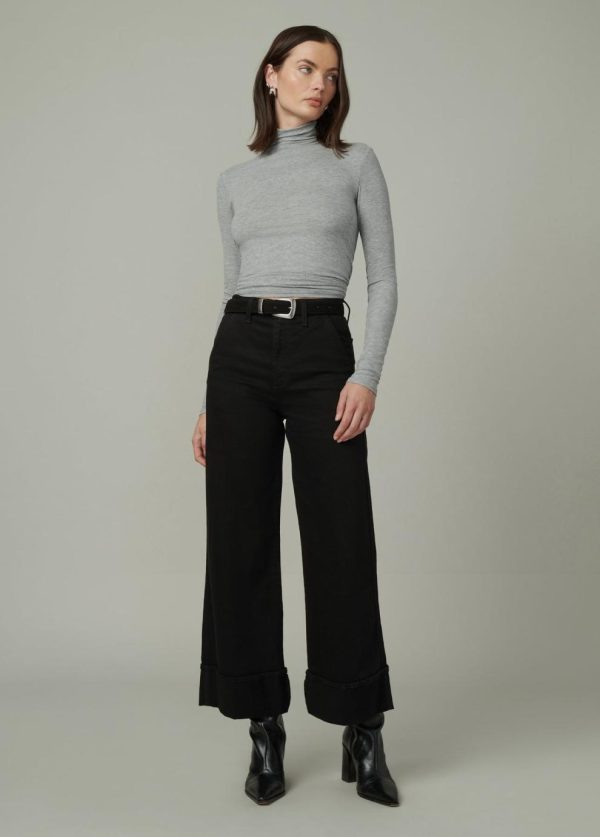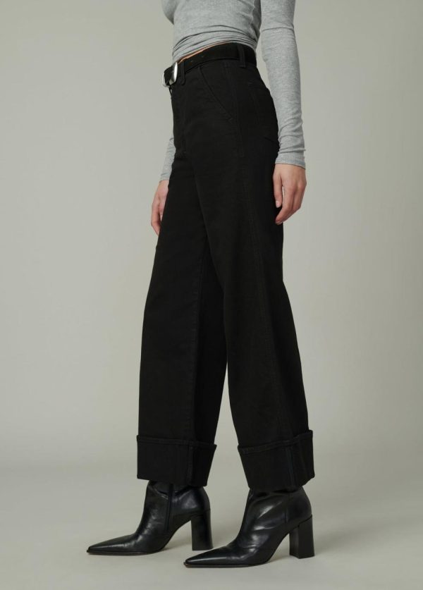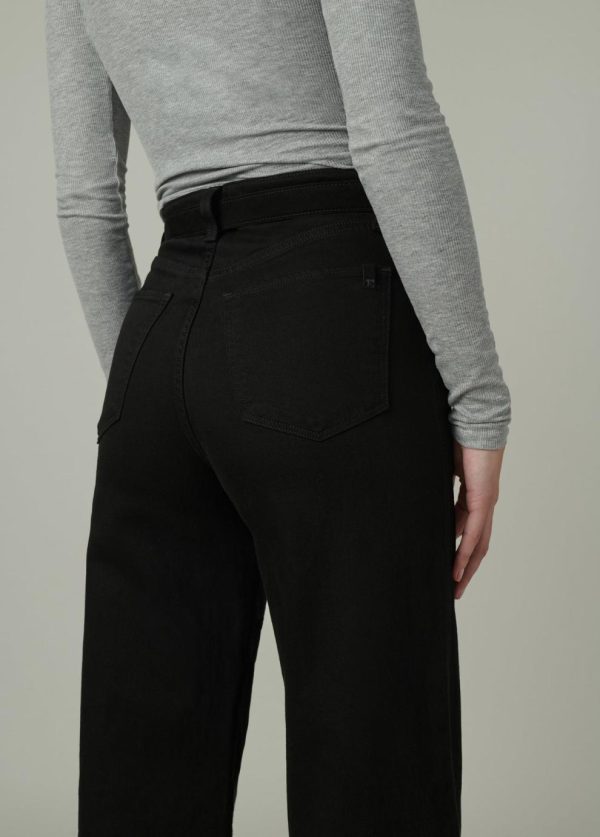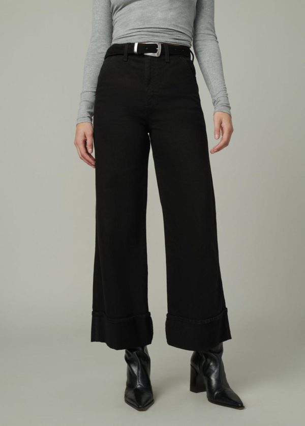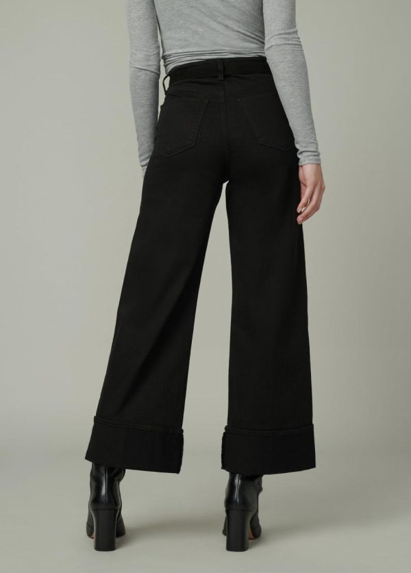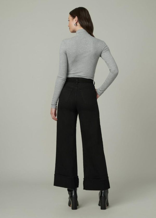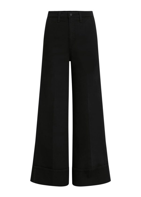 Elevate your style with our high-rise wide leg trousers featuring a sophisticated wide cuff design. These jeans are expertly tailored to contour your waist and hips while offering the comfort and flair of a wide leg silhouette. The slanted trouser pocket adds a touch of elegance, while the strategically tacked wide cuff maintains its perfect position and gracefully falls at the ankle for a polished finish.